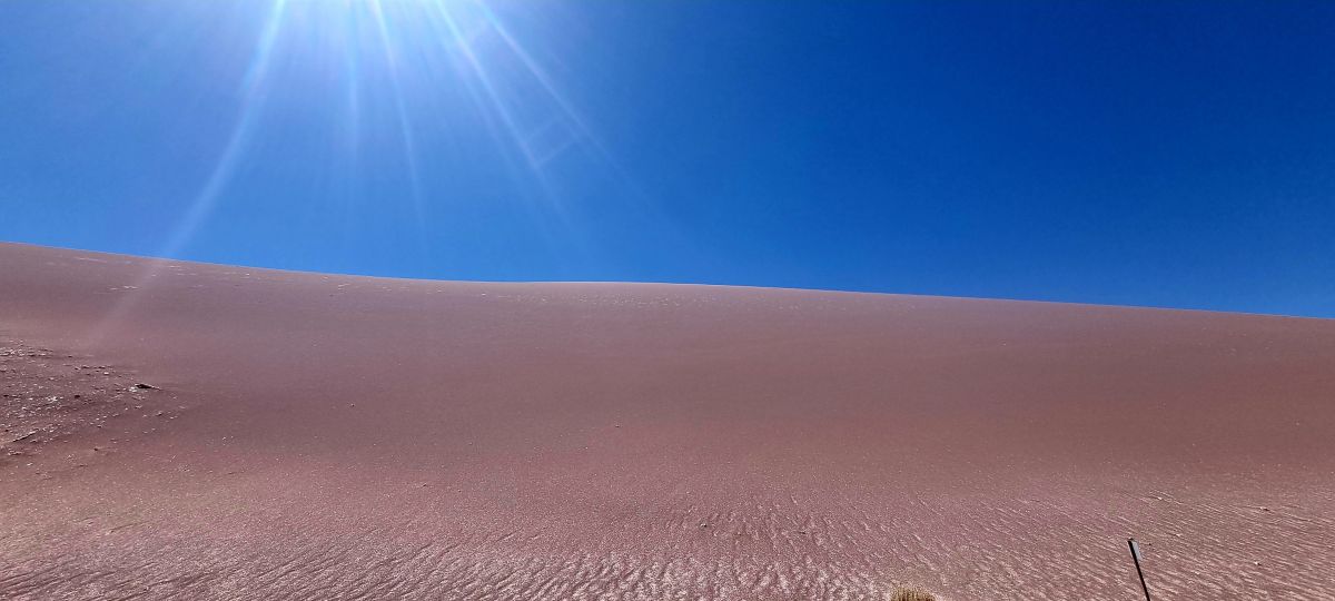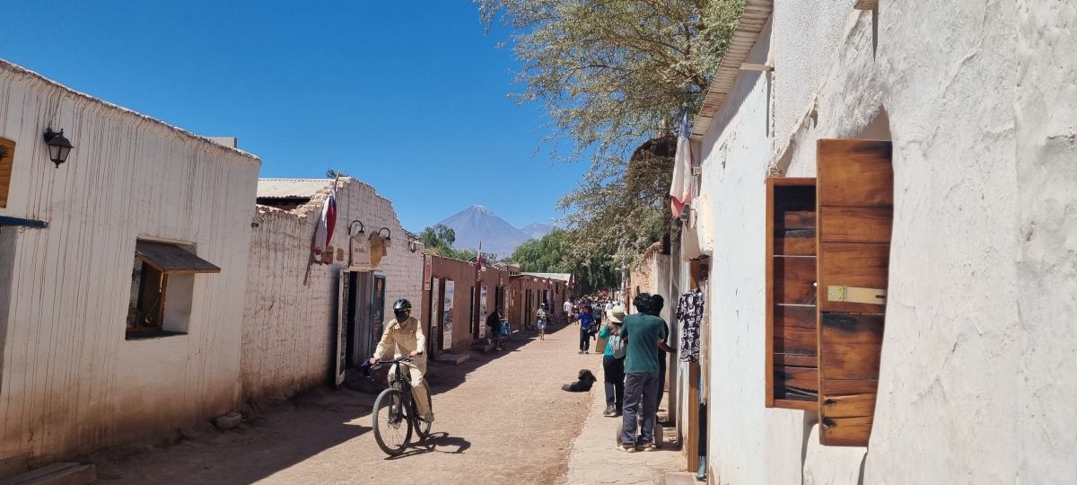 Der Nachmittag! Jetzt haben wir uns San Pedro angesehen, ich schrieb ja am Anfang, daß es ein vom Winde verwehter Ort ist. Aber nicht in der Touristenmeile, in den vom Verkehr befreiten Gassen, geht es hoch her. Ein Tourenanbieter nach dem anderen, jede Menge Souvenirläden, Wanderausstatter und Restaurantes und noch mehr Touristen. Viele Leute unterschiedlicher Art und aus allen Ländern tummeln sich hier, manche sicher schon seit Corona, aber trotzdem besteht ein gewisser Charme. Aus den Lautsprechern dröhnt das Lied.....völlig losgelöst von der Erde......auf englisch. Nun sind wir froh, daß unser Häuschen etwas außerhalb liegt! Dahin fahren wir auch wieder zurück, schnell noch in den Supermercado und zum Tanken .