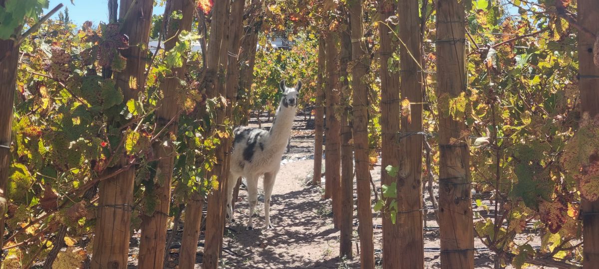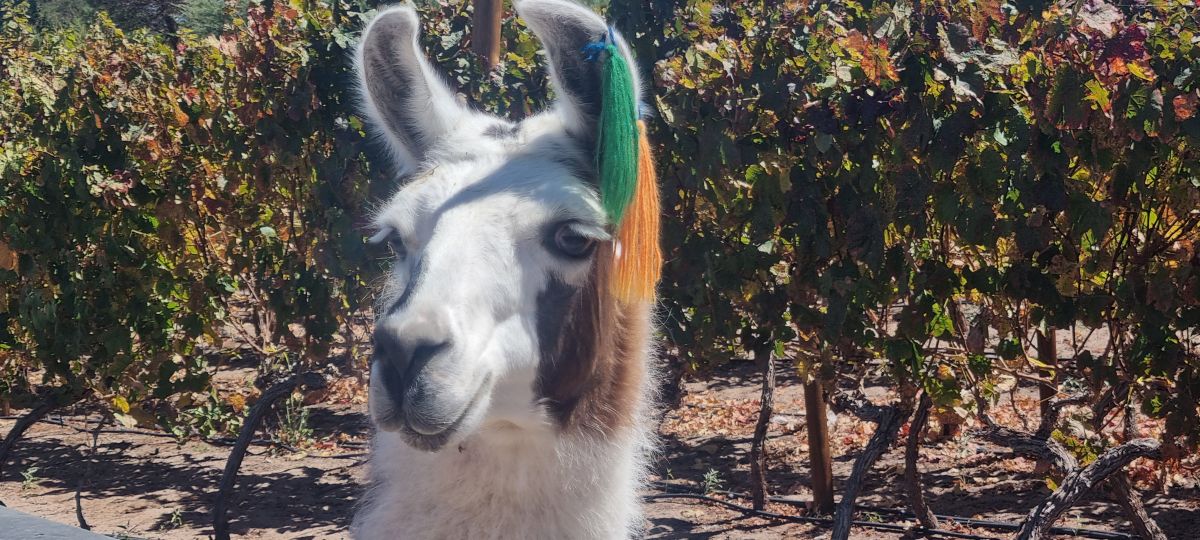 Während ich eher gelangweilt beim Auto blieb, rannte Carola das ganze Anwesen ab auf der Suche nach einer lebendigen Person. Ah, da kommt sie auch schon, gefunden, jetzt muss ich wieder ran. Englisch spricht hier keiner,nun wäre es fatal zu denken, daß ich spanisch spreche. Ich kann wohl einige Wörte und ich kann mich holperig durchfragen , aber ha, bei den Antworten kann ich mich meist nur auf ganz wenige verständliche Worte ,Gesten, Mimik und Erfahrung verlassen. Tourifreundliches Spanisch spricht hier niemand, aber wundersamerweise weiß er was wir, also Carola, wollen. Wir dürfen auf das kleine Weinanbaugebiet besuchen und können zwischen den Rebstöcken ein wenig spazieren gehen. Hier treffen wir auf zahme Lamas , die hier auch spazieren gehen, nun wandeln wir gemeinsam.....ach wie süß ist das denn. Dieses wirklich kleine Weingut zählt mit zu den höchstgelegen der Welt, ich glaube nur in Argentinien gibt es eines , das höher liegt. Der Wein heißt AYLLU, wir haben mal gleich einen Rose zu testen mit genommen. Es war wirklich toll. Fazit gut das man zu Zweit ist.