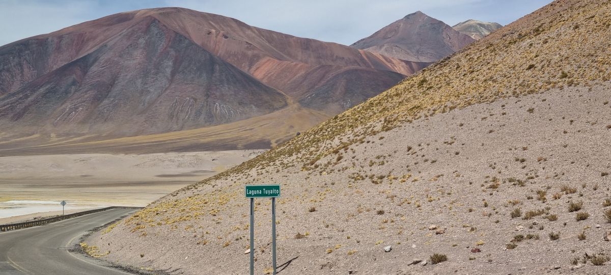 Weiterfahrt auf der Ruta 23 nach Piedras Rojas/ Aqua caliente oder Salar de Talar, gemeint ist immer das gleiche. Die Teerstrasse war bis dorthin schrecklich, viele tiefe Löcher, eine kleine Kraterlandschaft, besonders gerne ,wenn es gerade steil in die Kurve geht.