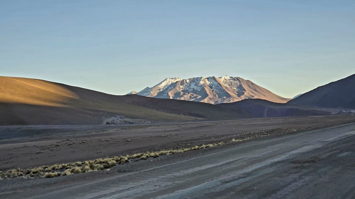 Als die Sonne über die Berge steigt, beginnt unsere kleine Off Road Tour an den Lagunen vorbei. Es ist eine grobe Schotterpiste und die Wege kann man sich suchen oder folgt den Spuren, die schon hinterlassen wurden.