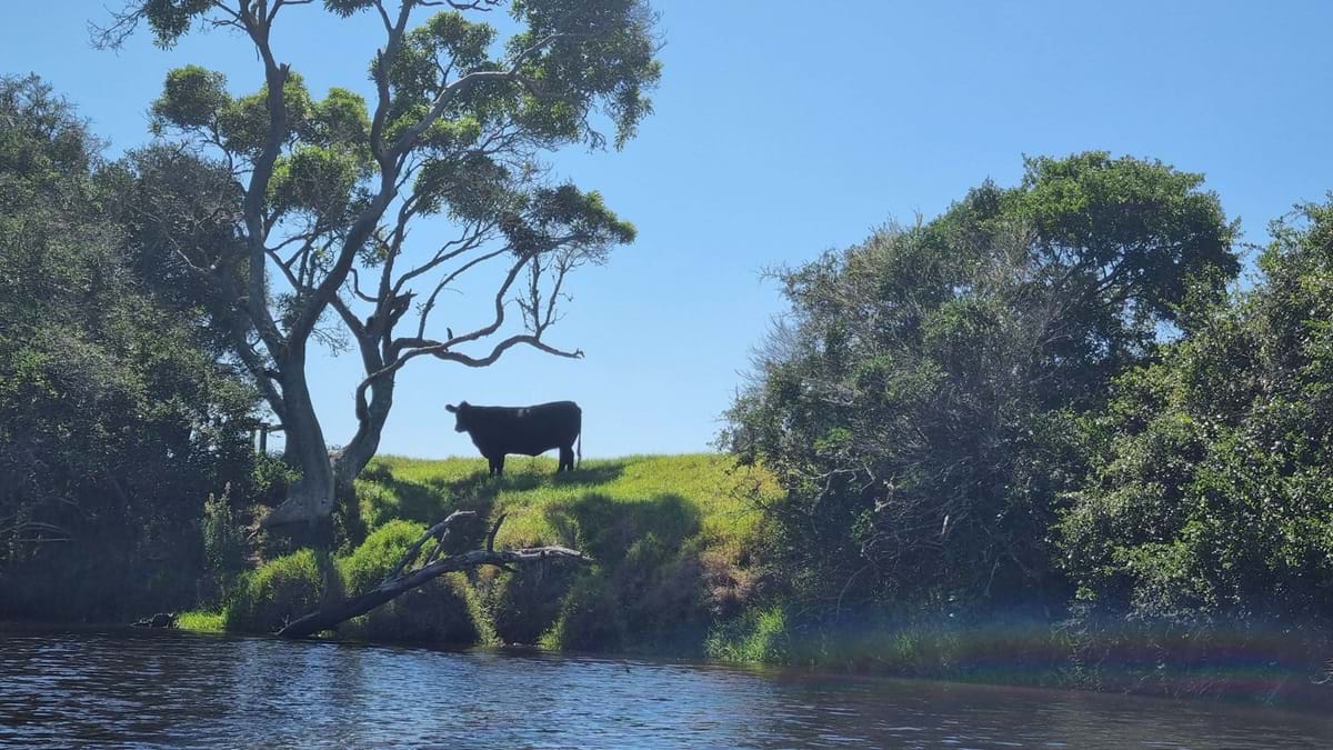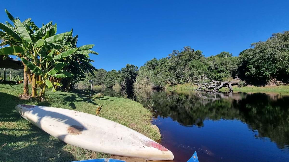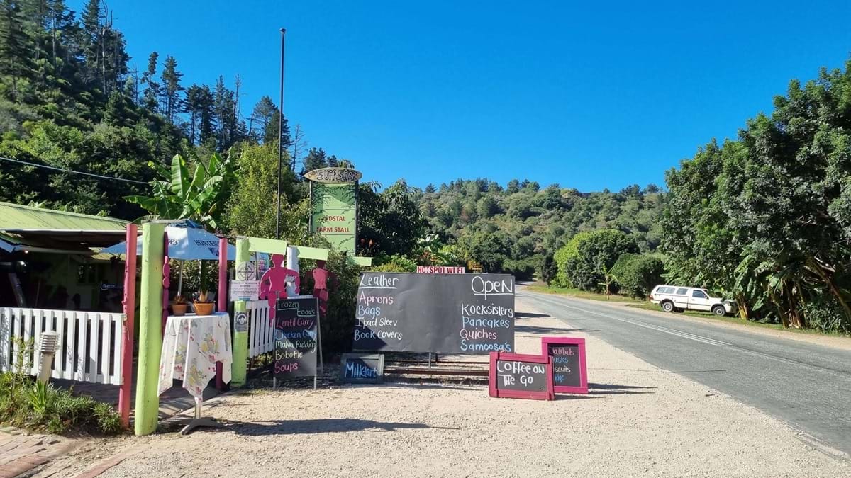 Ein neuer Tag, die Sonne lacht und ich auch wieder. Ich fühle mich wieder fit und wir machen uns auf zu einer Kajakfahrt. Von der N2 aus führt eine kleine Nebenstraße nach Buffels Bay. Noch ziemlich am Anfang der Straße liegt das Gästehaus The Riverdeck Lodge and Backpackers, wirklich schön gelegen am Fluss. Von der Lodge habe ich nicht viel gesehen, aber das Restaurant ist nett gestaltet. Mit vielen schattigen und chilligen Plätzen inmitten von Bananenpflanzen. Und wenn man den Berichten glaubt, ist das Essen hier ausgezeichnet. Bevor wir uns ein Kajak ausleihen, gehen wir noch auf der anderen Straßenseite in ein kleines Café und ich bestelle mir Pfannkuchen. Oh, waren die lecker. Frisch gestärkt mit Zucker geht’s zur Kajakfahrt über den Fluss bis zum Meer. Wir zahlen einmalig 10 Euro für eine unbestimmte Zeit und schon geht’s los