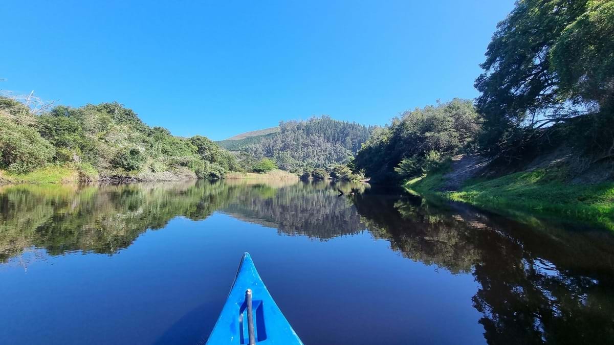 Wir entscheiden uns für den Half Collared Kingsfisher Trail in Wilderness. Ein drei Kilometer langer Weg am Fluss entlang bis zu einem kleinen Wasserfall. Ohne besondere Steigung. Leider, muss ich gestehen, sind wir nicht am Wasserfall angekommen. Nach zweieinhalb Kilometern wollte ich mich auf einen Baumstamm legen und nie wieder aufstehen. Also kehrten wir um und ich war froh, wieder im Auto zu sitzen. Das ist jetzt ärgerlich, denn dieser Weg ist exotisch schön und nicht wirklich anstrengend. Wer möchte, kann sich auch ein Kajak leihen und auf dem Fluss zum Wasserfall paddeln.