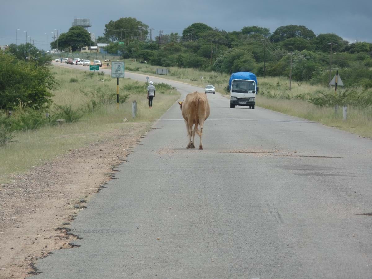 Noch sind wir mitten drin im Urlaub. Die Grenze nach Botswana ist fast erreicht und da stehen sie auch schon wieder… Polizeiblock. Diesmal halten wir unsere roten deutschen Reisepässe schon vom weiten am ausgestreckten Arm aus dem Fenster. „Diplomats“ Gemurmel, wir werden durch gewunken. Vielleicht lag es aber auch daran, dass wir unseren aus Deutschland mitgebrachten schwarz-rot-gelben WM-Seitenspiegelüberzug aufgezogen hatten?