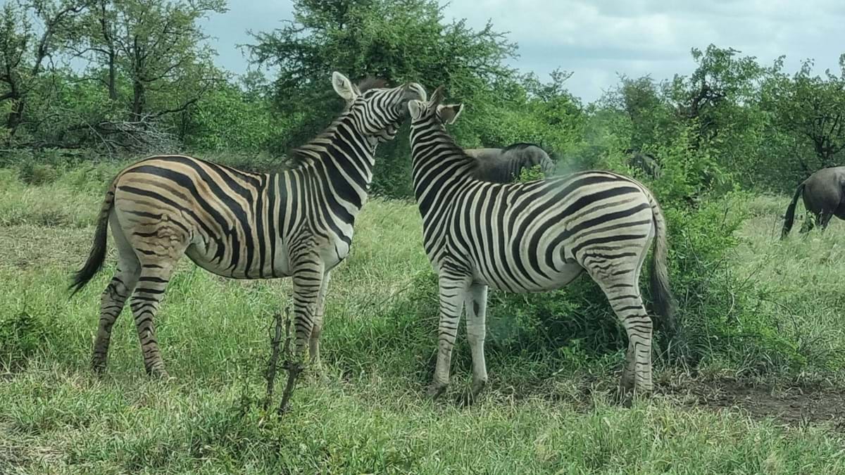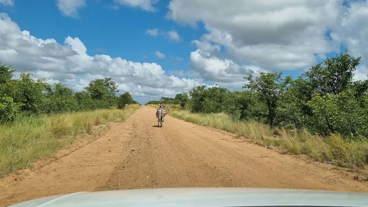 Bis zum Mopani Camp haben wir keine weiteren aufregenden Erlebnisse. Der leichte eintönige Nieselregen machte uns etwas schläfrig und so stärkten wir uns mit einem späten Frühstück. Das Camp liegt idyllisch unter Bäumen an einem Fluss. In Zeiten von Corona ist hier absolut nichts los und es ist recht einsam. Für uns ist das auch ideal, weil man nur wenigen Autos begegnet. Am mittags kommen wir im Camp Shingwedzi an. Dies liegt wie ausgestorben da und wir halten uns nicht lange auf. Für die Rückfahrt wählen wir die zwar längere, aber einsamere Strecke der S 50, die parallel zu Grenze von Mosambik verläuft. Diese Landschaft beeindruckt erst durch Eintönigkeit, aber dann kommen auch immer wieder wunderschöne aufregende Abschnitte. Hier stoßen wir auf enorm viele Zebra- und Gnu-Herden. Rechts und links ziehen sie am Horizont vorbei, überqueren unsere Straße ohne uns Beachtung zu schenken. Wir erleben, wie junge Zebrahengste sich jagen, beißen und treten. Und wie süß sind die ganz Kleinen, die mit ihren dünnen Beinchen durch das Gras rennen und zärtlich aneinander knabbern.