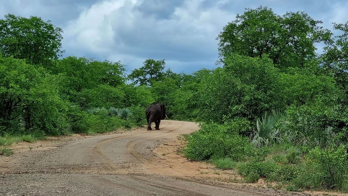 Durch den Regen strahlt die Landschaft in satten Grüntönen. Die Flüsse sind voller Wasser und die Tiere stehen im dichten Busch. Im Olifants Camp sitzen wir zum Lunch auf der Terrasse und blicken über den Fluss. In der Ferne hört man Flusspferde röhren. Auch wenn sich der Himmel langsam zuzieht, bleiben die Temperaturen um die 30 Grad und wir für heute vom Regen verschont.