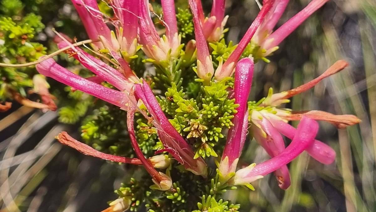 Der nächste Tag beginnt heiß und sonnig, aber wir sind voller Tatendrang und wollen eine leichte Wanderung wagen. Als es dann um 9 Uhr losging, war es eigentlich schon zu spät dafür. Wir fuhren durch den Ort zum Hangklip Park und kehrten schon nach zwei Stunden wieder um, fix und fertig. Der Weg steigt leicht zum Hausberg an, die Landschaft wirkt auf dem ersten Blick karg, aber sieht man genauer hin, dann erkennt man unzählige verschiedene Pflanzen, die farbenfroh in Blüte stehen.